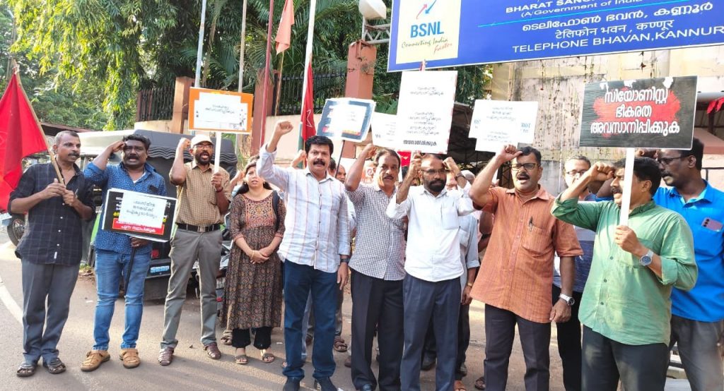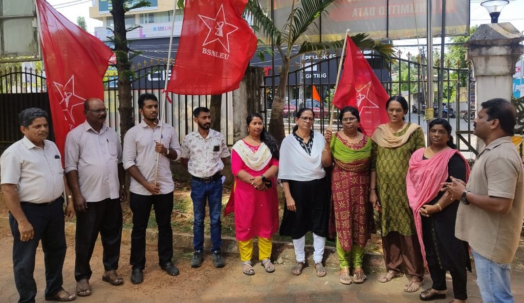 ഗാസയിലെ കൂട്ടക്കൊല അവസാനിപ്പിക്കുക എന്നാവശ്യപ്പെട്ട് രാജ്യവ്യപകമായി BSNL ജീവനക്കാർ പ്രതിഷേധപ്രകടനം നടത്തി. കേരളത്തിൽ നടന്ന പ്രതിഷേധ പ്രകടനം.