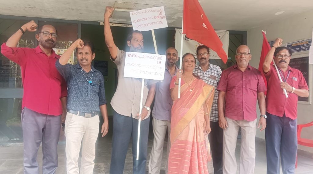 സെപ്തംബർ 19 രക്തസാക്ഷി അനുസ്മരണം by BSNL Employees Union September 19, 2025 News 1968 സെപ്തംബർ 19 ലെ ഐതിഹാസിക പണി മുടക്കിൻ്റെ സ്മരണാർത്ഥം ജില്ലകളിൽ പരിപാടികൾ സംഘടിപ്പിച്ചു.