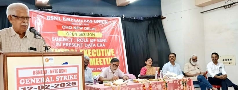 ബിഎസ്എൻഎൽ എംപ്ലോയീസ് യൂണിയൻ അഖിലേന്ത്യാ പ്രവർത്തക സമിതി യോഗം 2026 ജനുവരി 31, ഫെബ്രുവരി 1 തിയ്യതികളിൽ മംഗലാപുരത്ത് ചേർന്നു. മുതിർന്ന നേതാവ് വി എ എൻ നമ്പൂതിരി ദേശീയ പതാകയും അഖിലേന്ത്യാ പ്രസിഡന്റ് എം വിജയകുമാർ സംഘടനയുടെ രക്ത പതാകയും ഉയർത്തിയതോടെ പ്രവർത്തക സമിതി യോഗം ആരംഭിച്ചു. മംഗലാപുരം ജില്ലാ സെക്രട്ടറി തൻവീർ പാഷ സ്വാഗതം ആശംസിച്ചു.